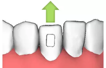 הבקעה מאולצת (אקסטרוזיה) של שן קצרה ויישור מלא ביחס לשיניים הסמוכות
