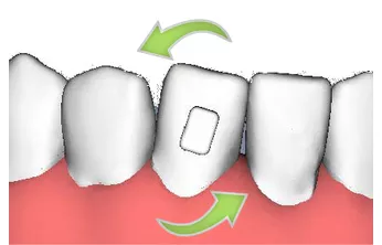 תיקוני גובה אפשריים רק ע״י האטצ'מנטים (אינטרוזיה) החזרת השן למקומה ויישור עם השיניים הסמוכות לה